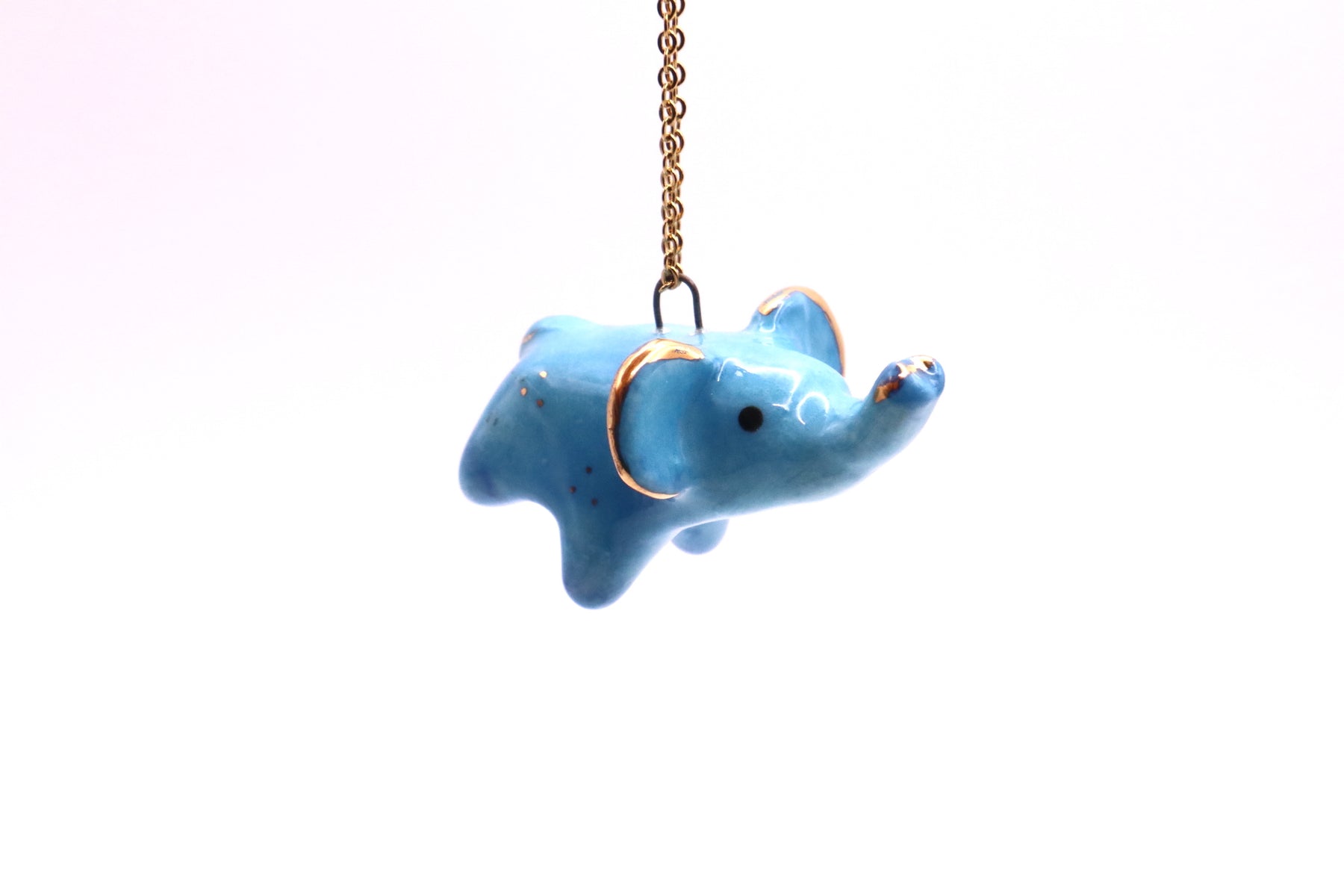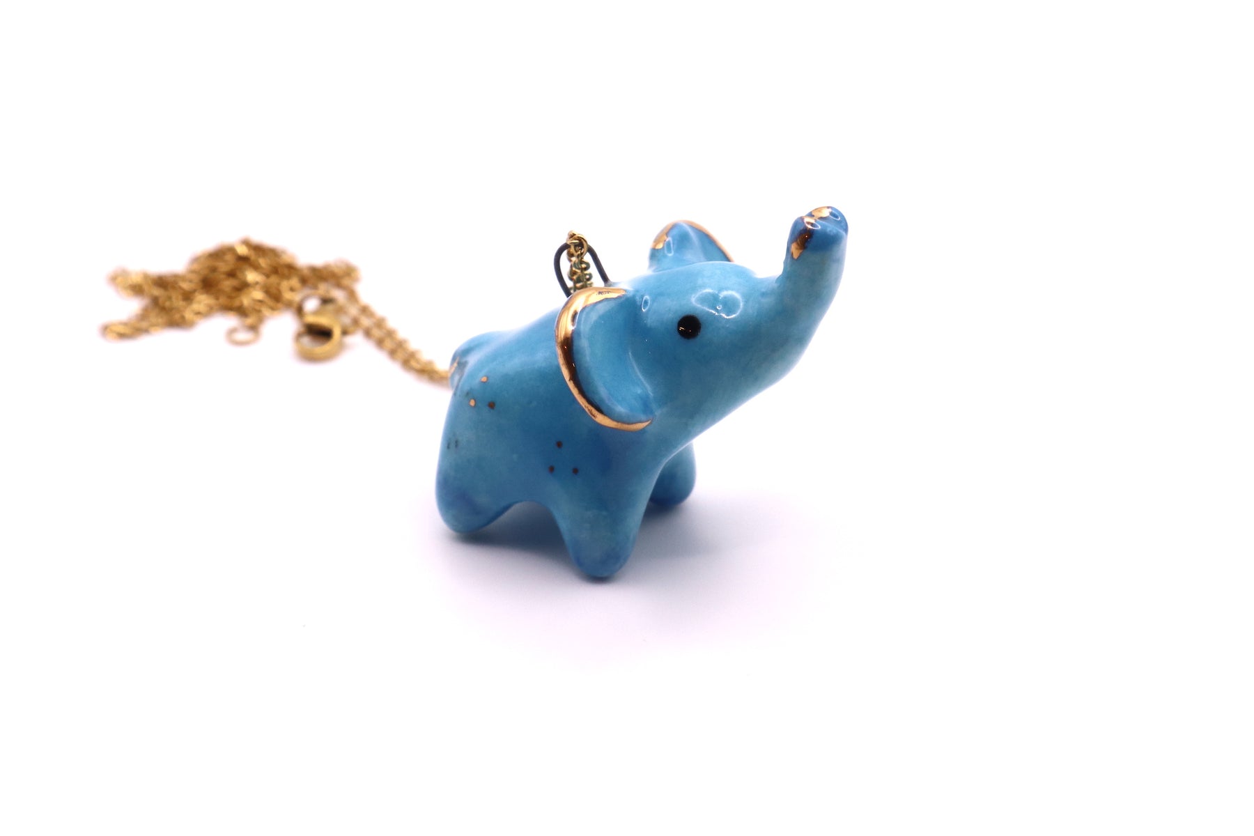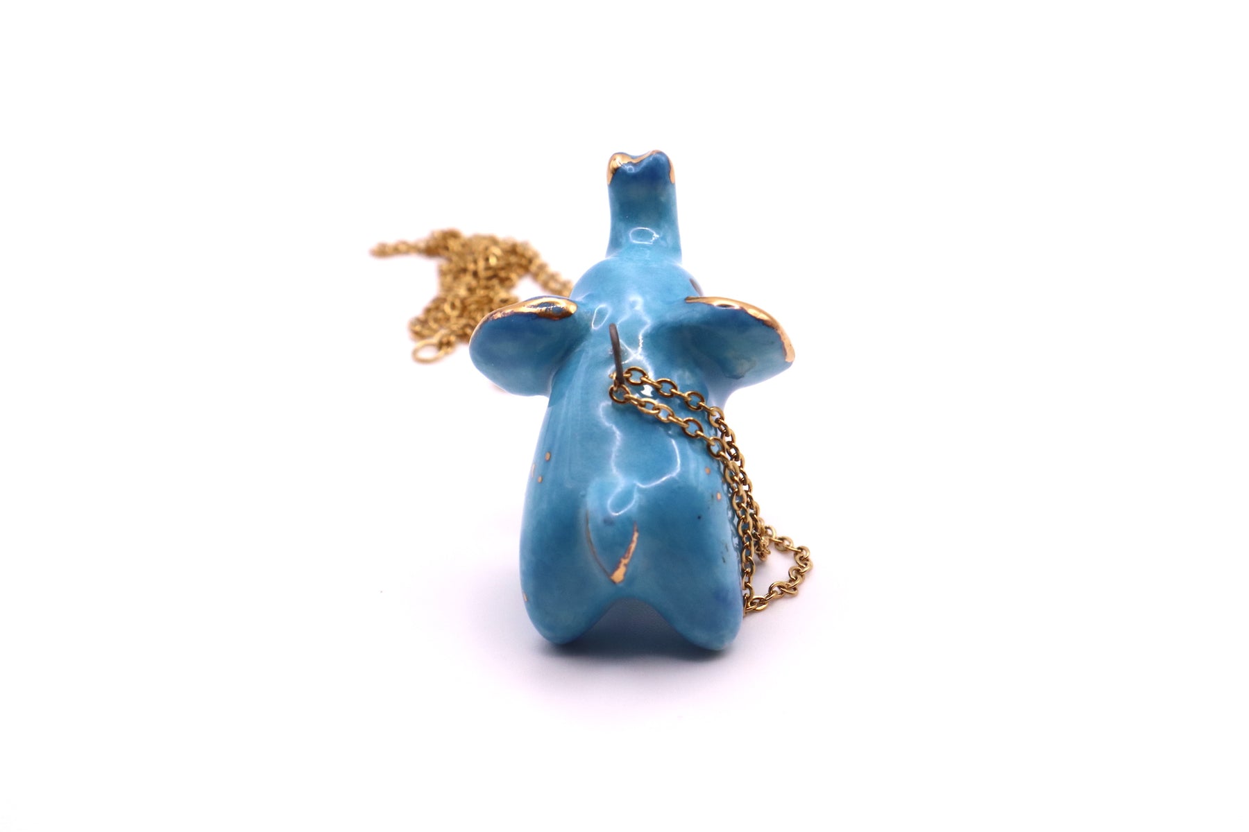 This long necklace features lovingly handmade porcelain animal. It has been hand sculpted and finished with a beautiful non-toxic glaze and gold luster. The luster contains real gold with a brilliance of 22K.