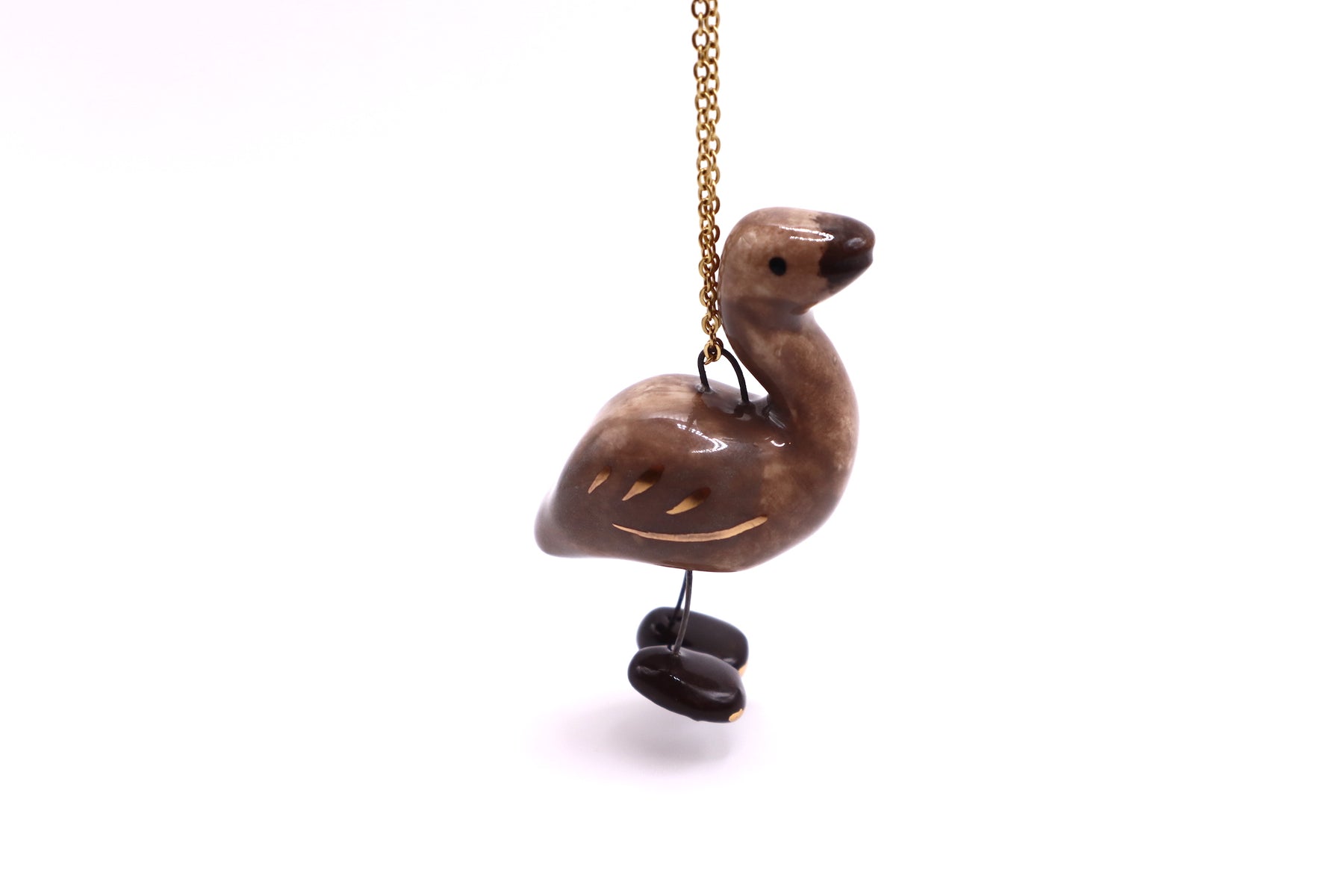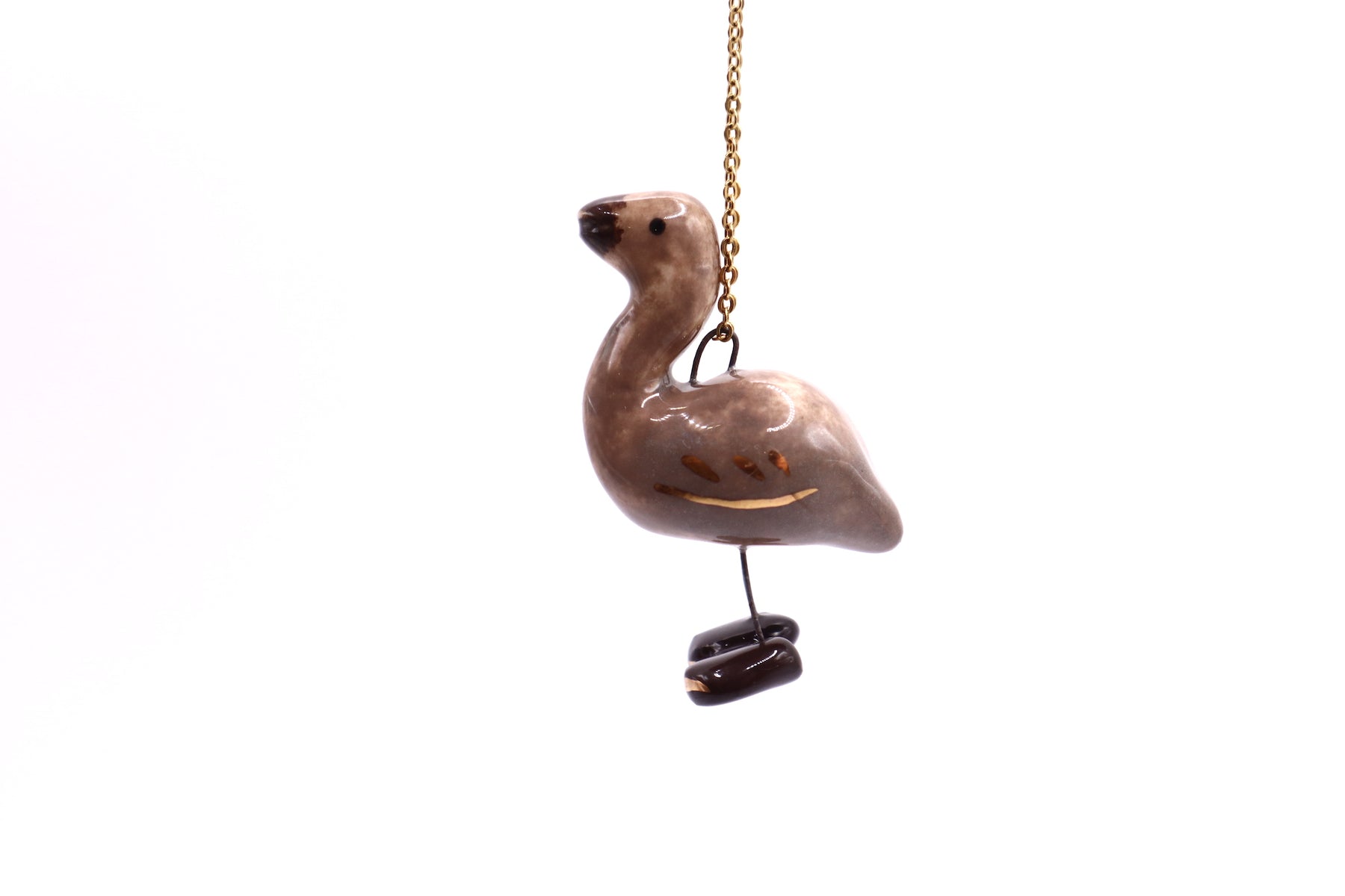 This long necklace features lovingly handmade porcelain animal. It has been hand sculpted and finished with a beautiful non-toxic glaze and gold luster. The luster contains real gold with a brilliance of 22K.