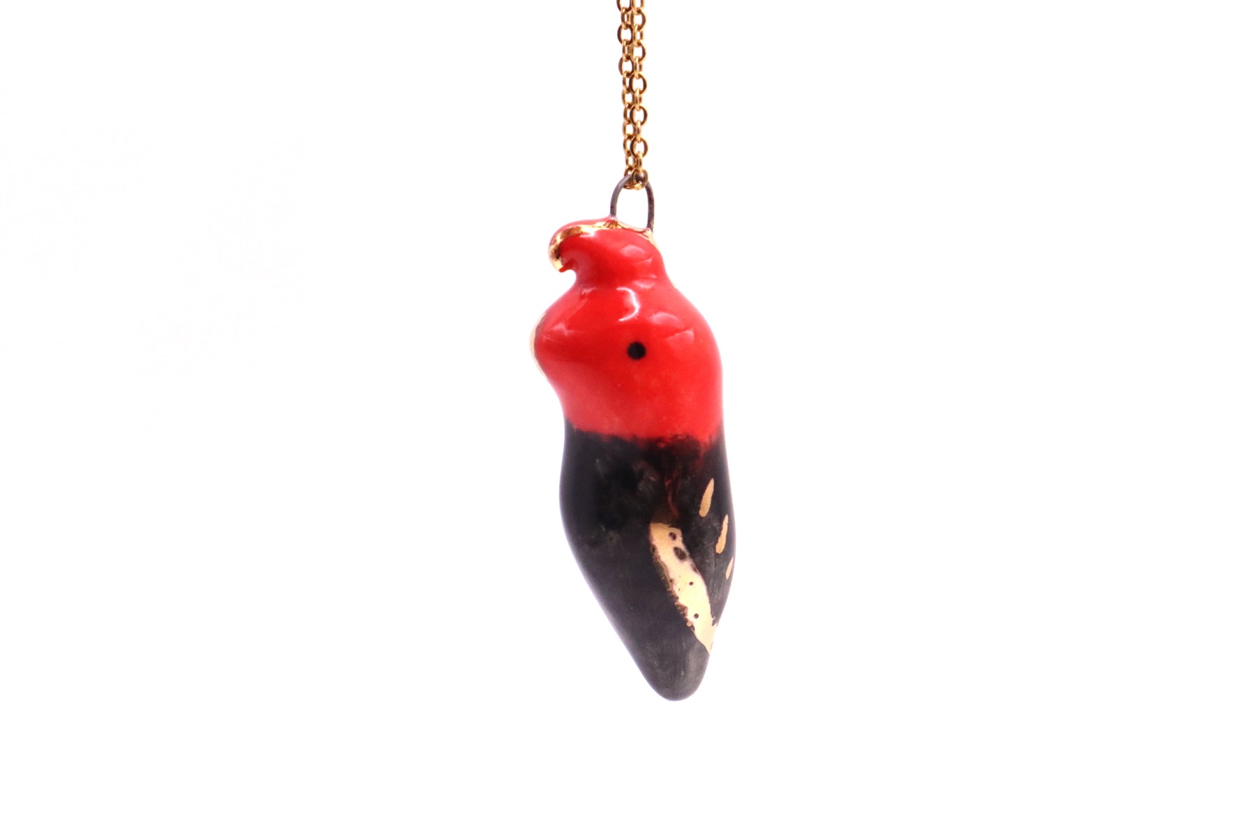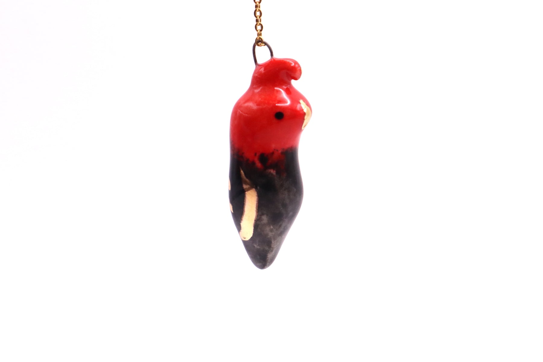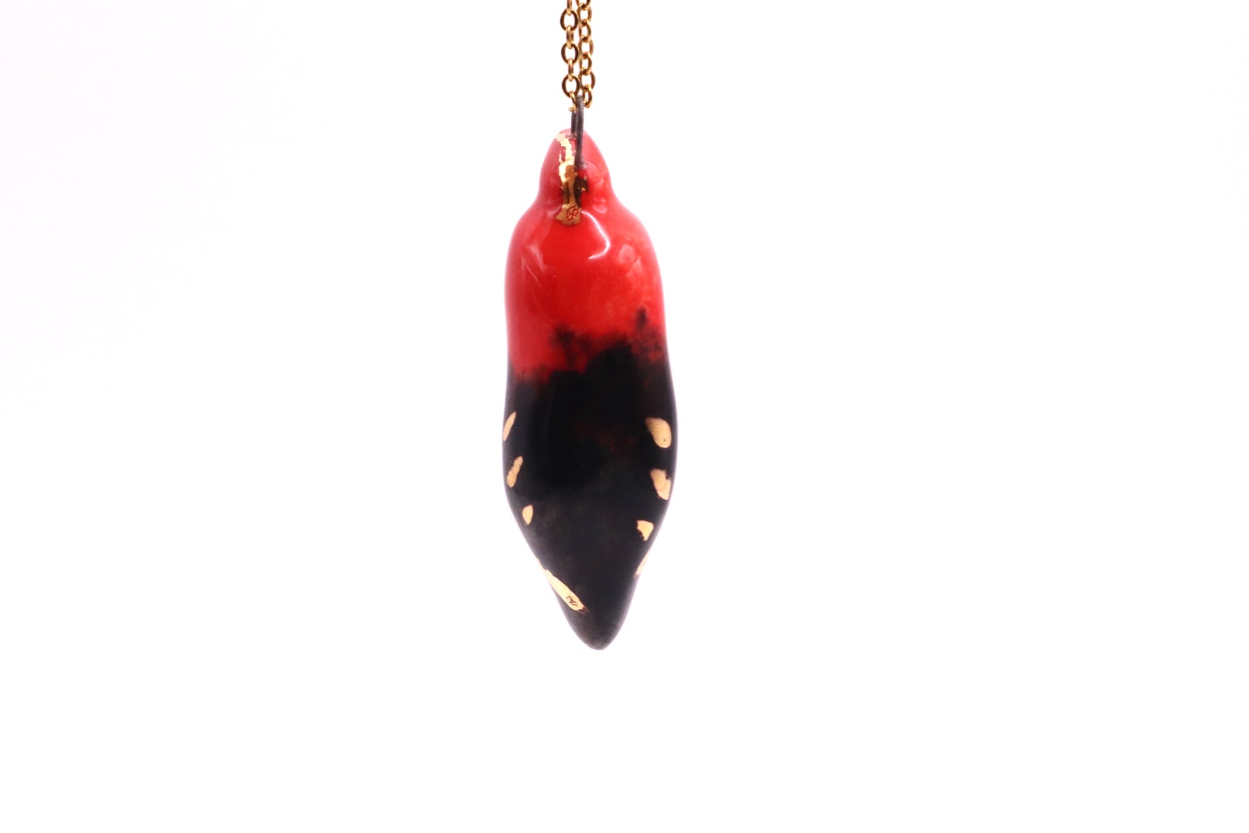 This long necklace features lovingly handmade porcelain animal. It has been hand sculpted and finished with a beautiful non-toxic glaze and gold luster. The luster contains real gold with a brilliance of 22K.