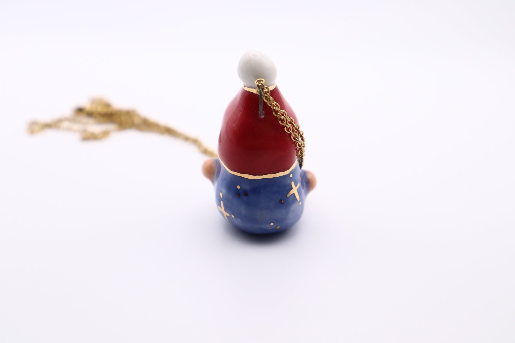 This long necklace features lovingly handmade porcelain animal. It has been hand sculpted and finished with a beautiful non-toxic glaze and gold luster. The luster contains real gold with a brilliance of 22K.