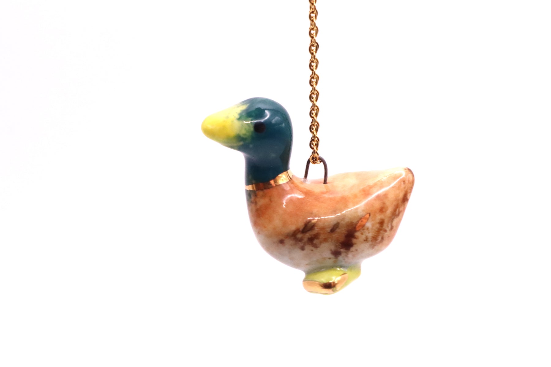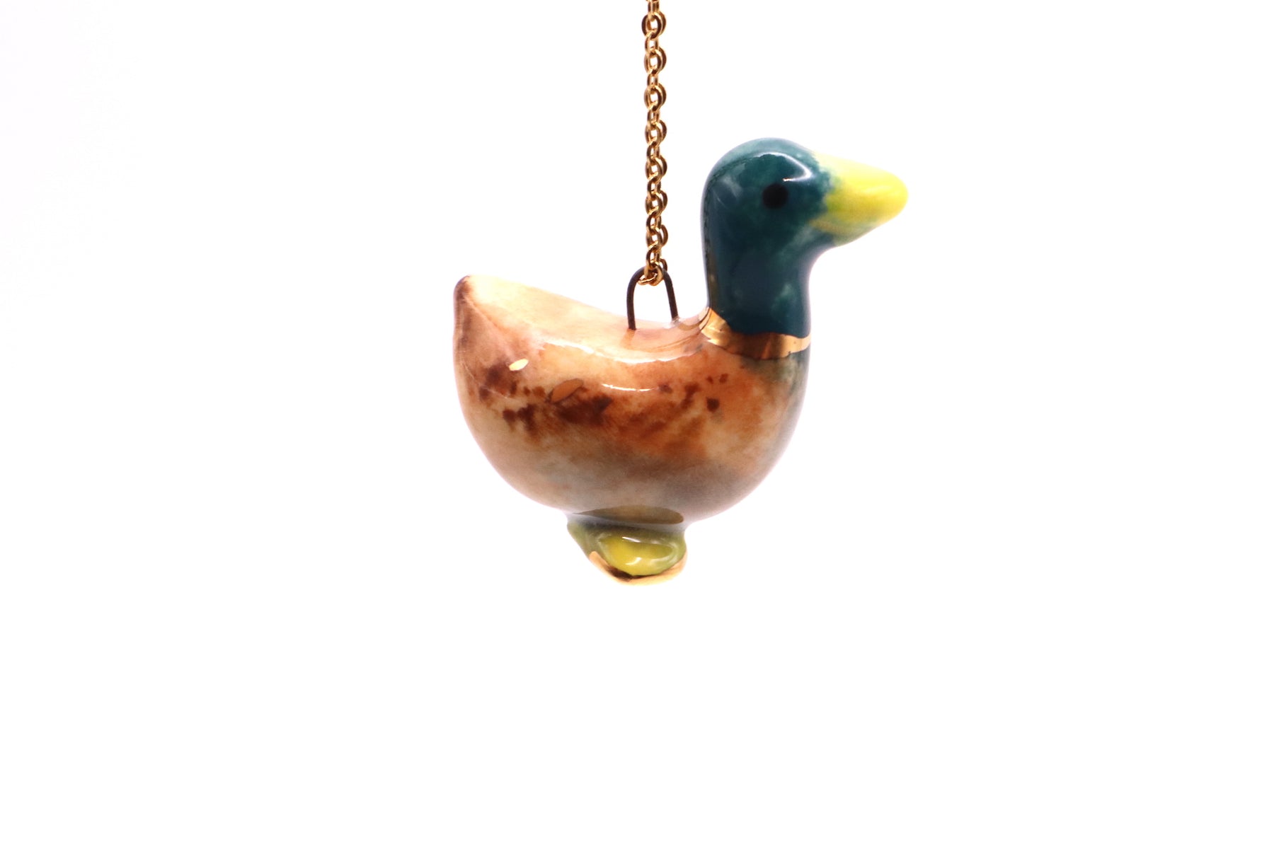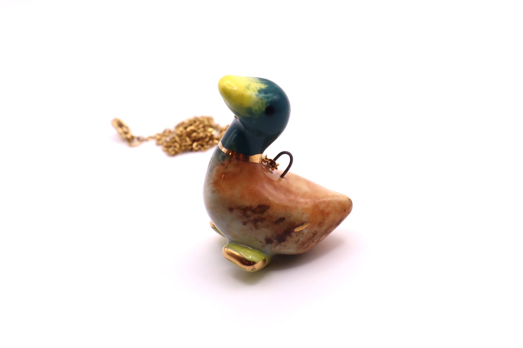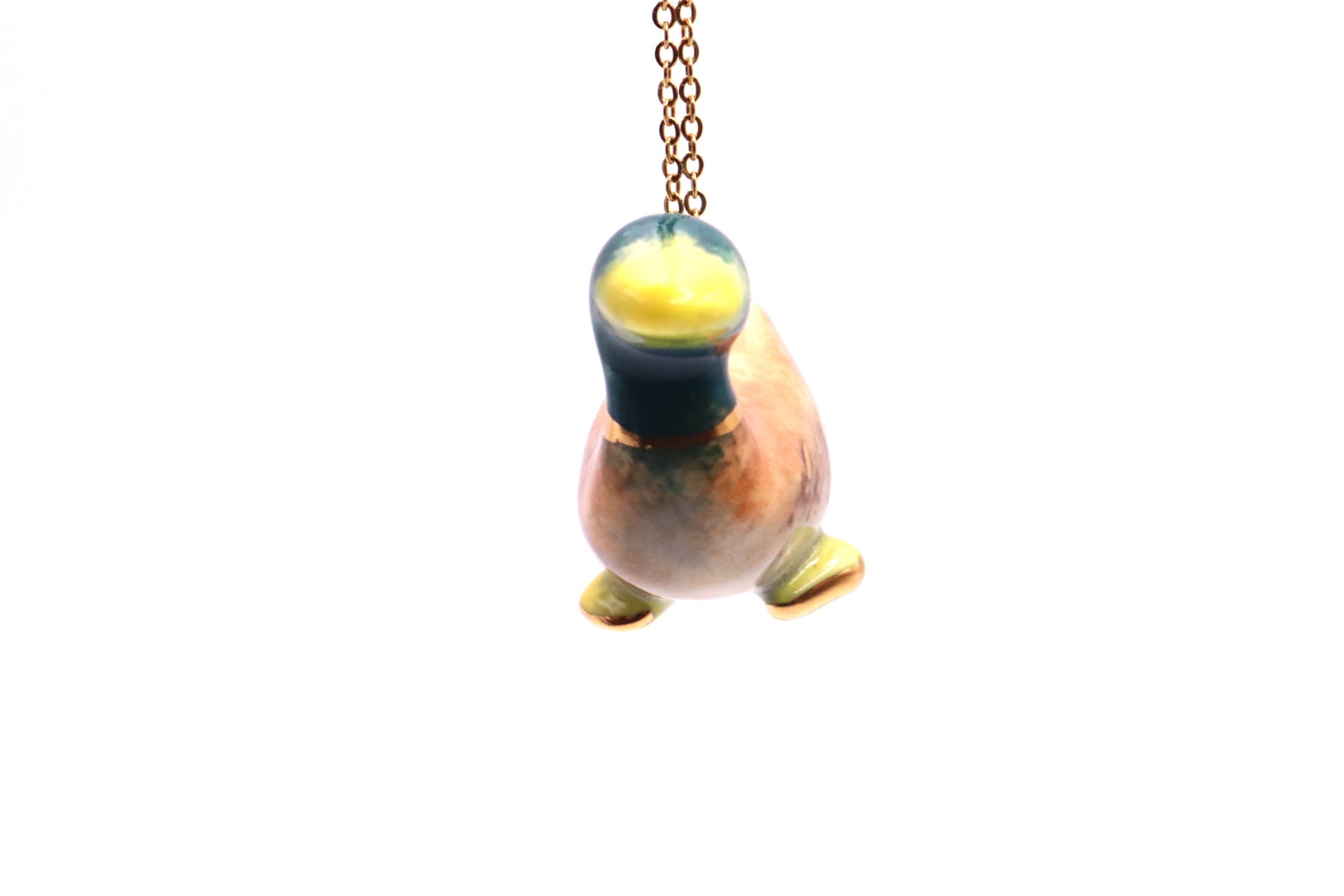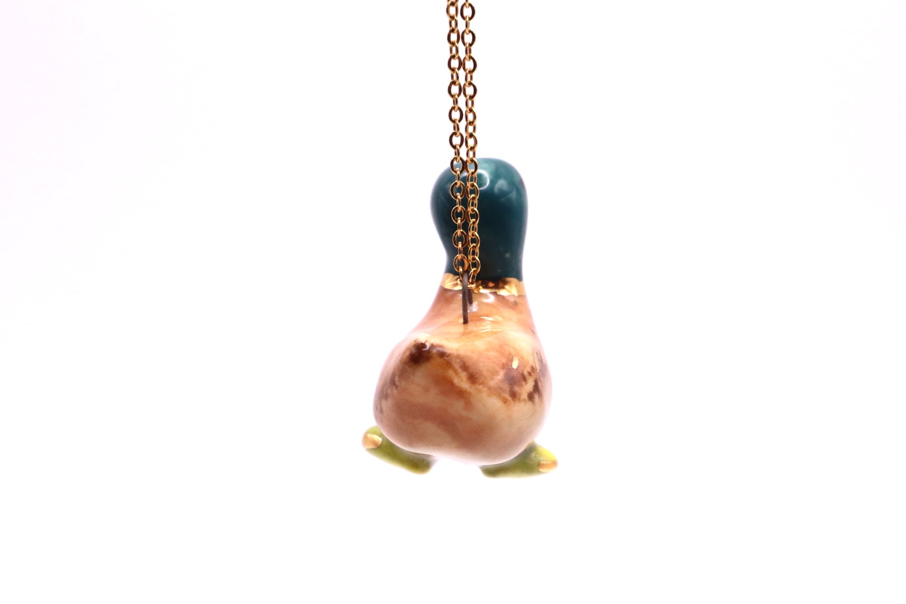 This long necklace features lovingly handmade porcelain animal. It has been hand sculpted and finished with a beautiful non-toxic glaze and gold luster. The luster contains real gold with a brilliance of 22K.