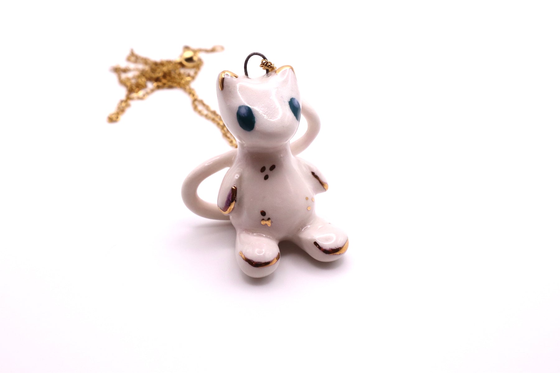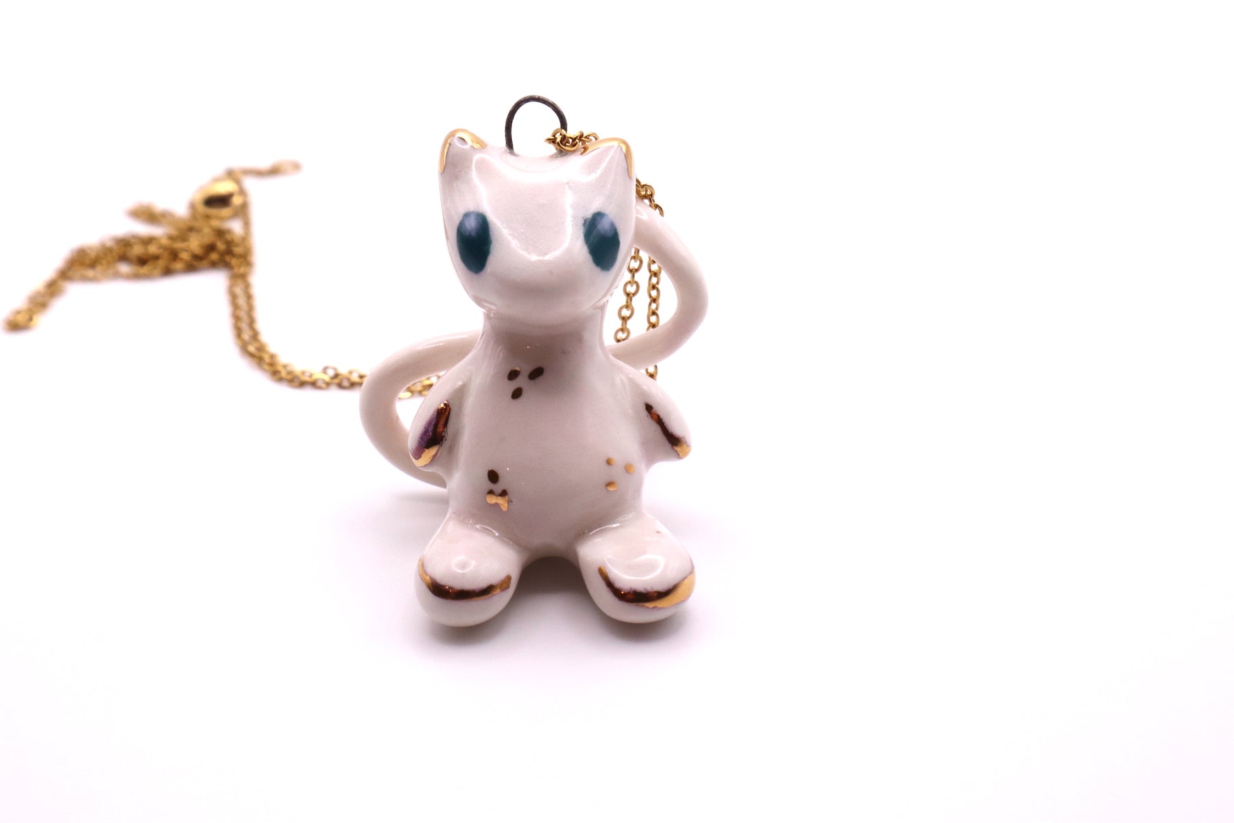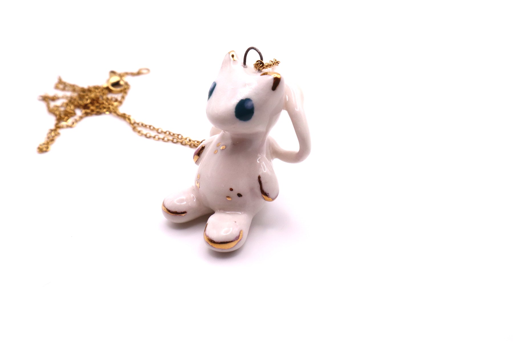 This long necklace features lovingly handmade porcelain animal. It has been hand sculpted and finished with a beautiful non-toxic glaze and gold luster. The luster contains real gold with a brilliance of 22K.