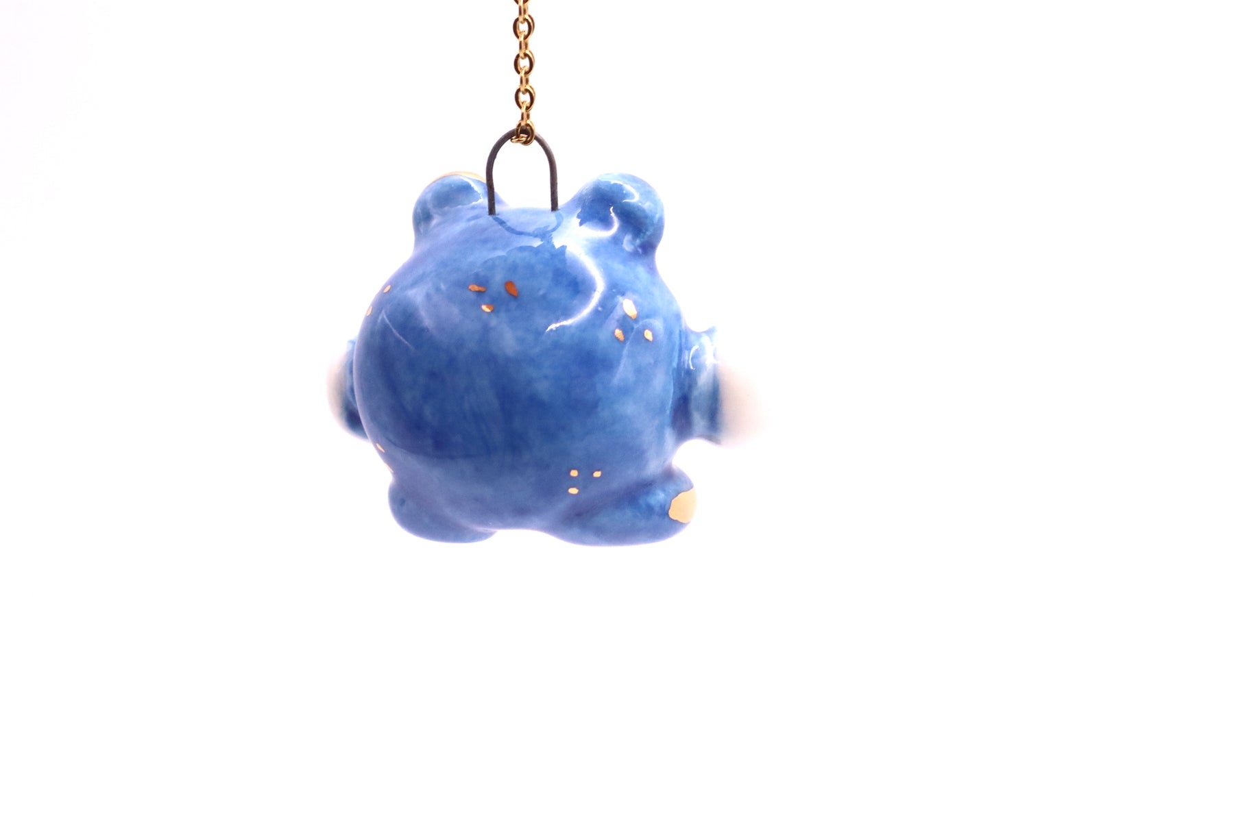 This long necklace features lovingly handmade porcelain animal. It has been hand sculpted and finished with a beautiful non-toxic glaze and gold luster. The luster contains real gold with a brilliance of 22K.