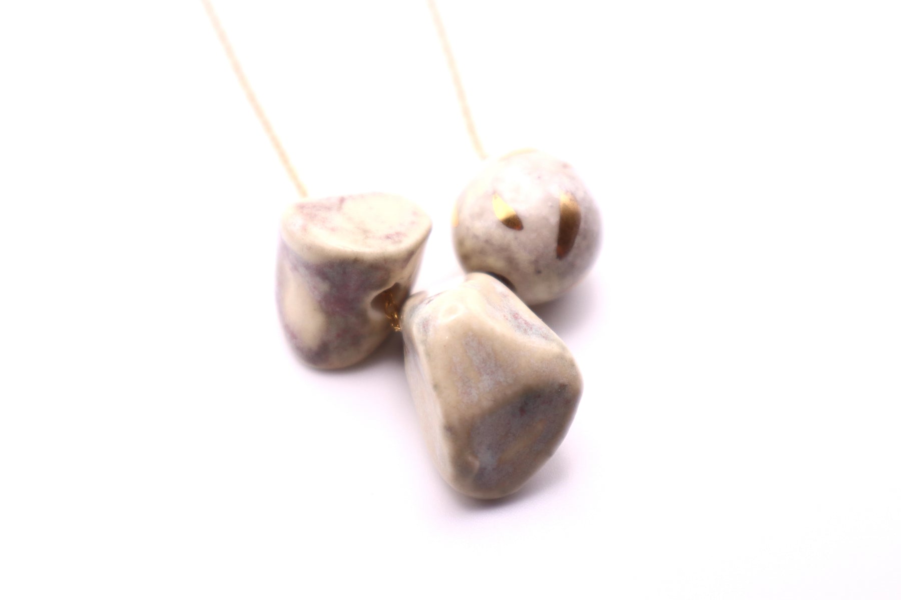 This long necklace features lovingly handmade porcelain beads. They have been hand shaped and finished with a beautiful non-toxic glaze.