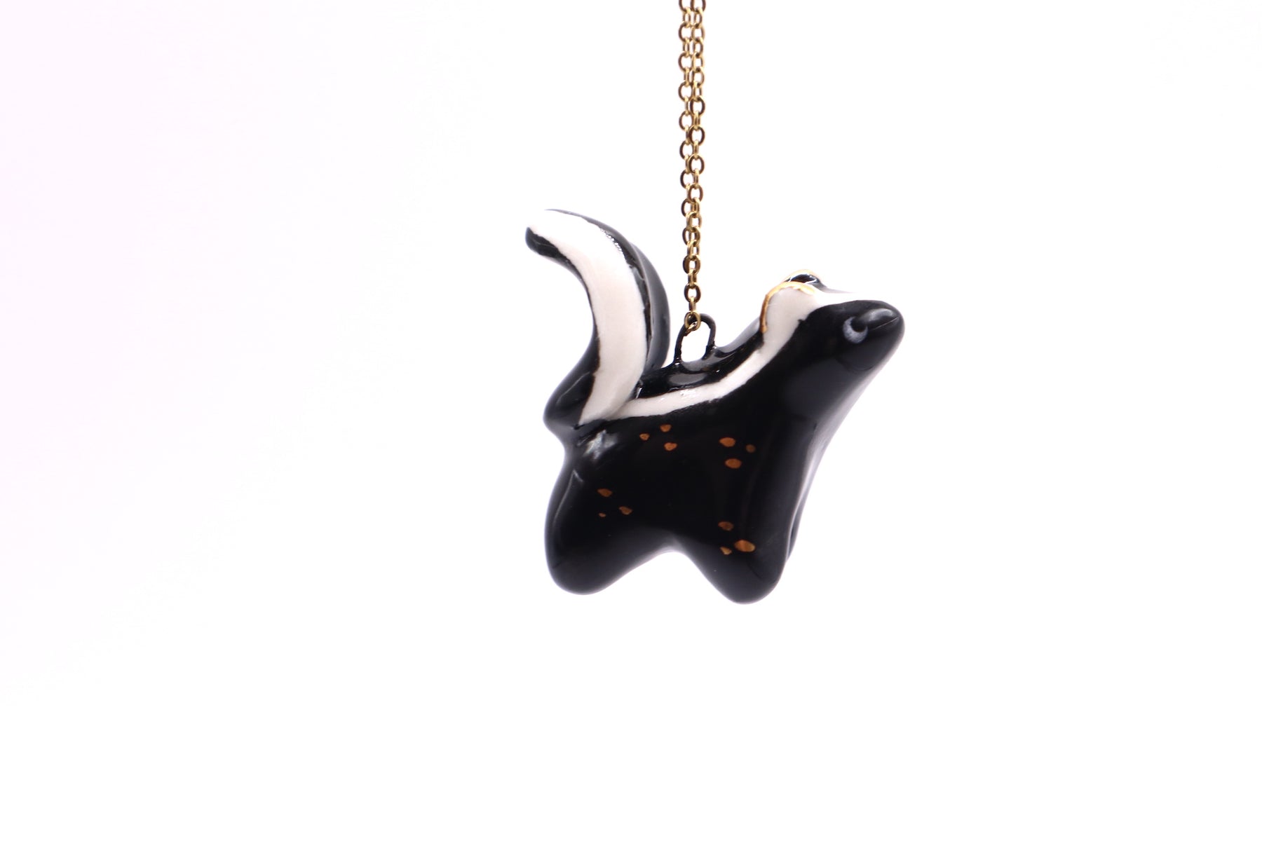 This long necklace features lovingly handmade porcelain animal. It has been hand sculpted and finished with a beautiful non-toxic glaze and gold luster. The luster contains real gold with a brilliance of 22K.