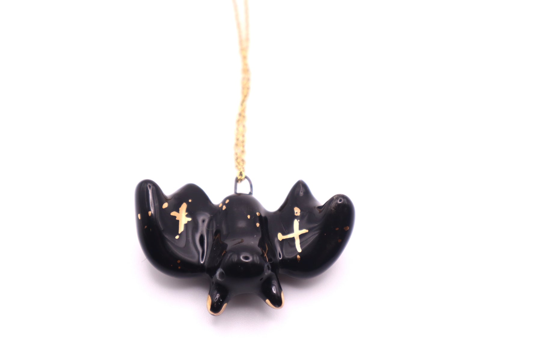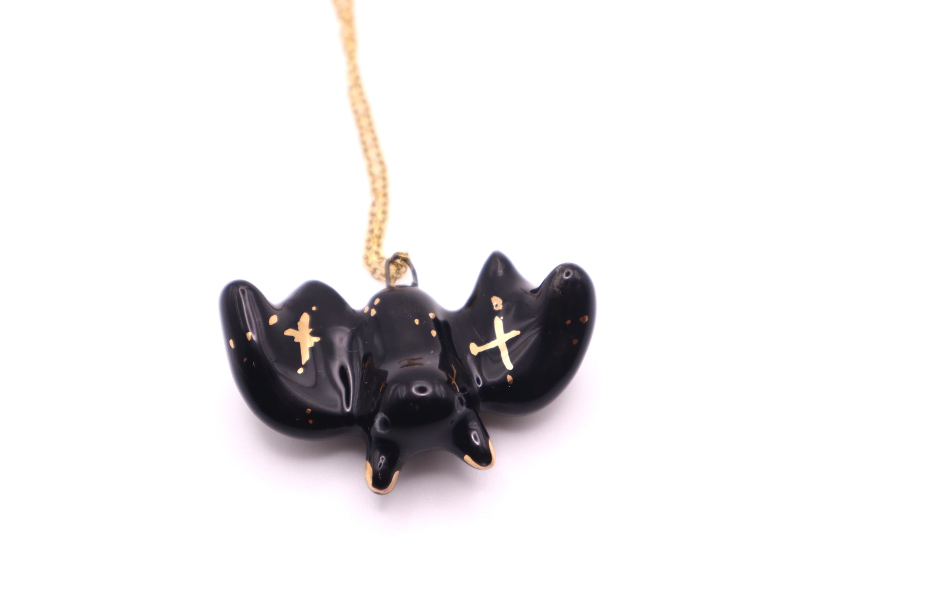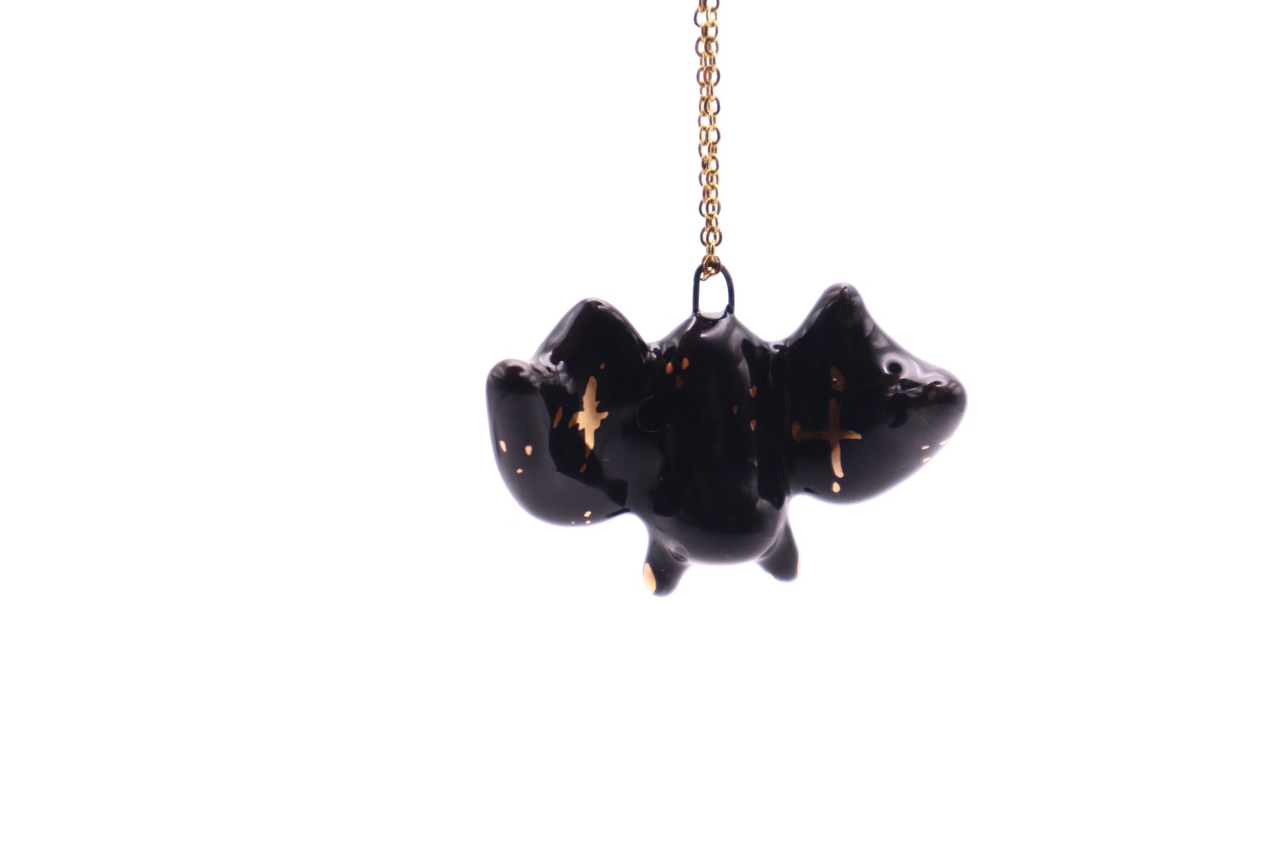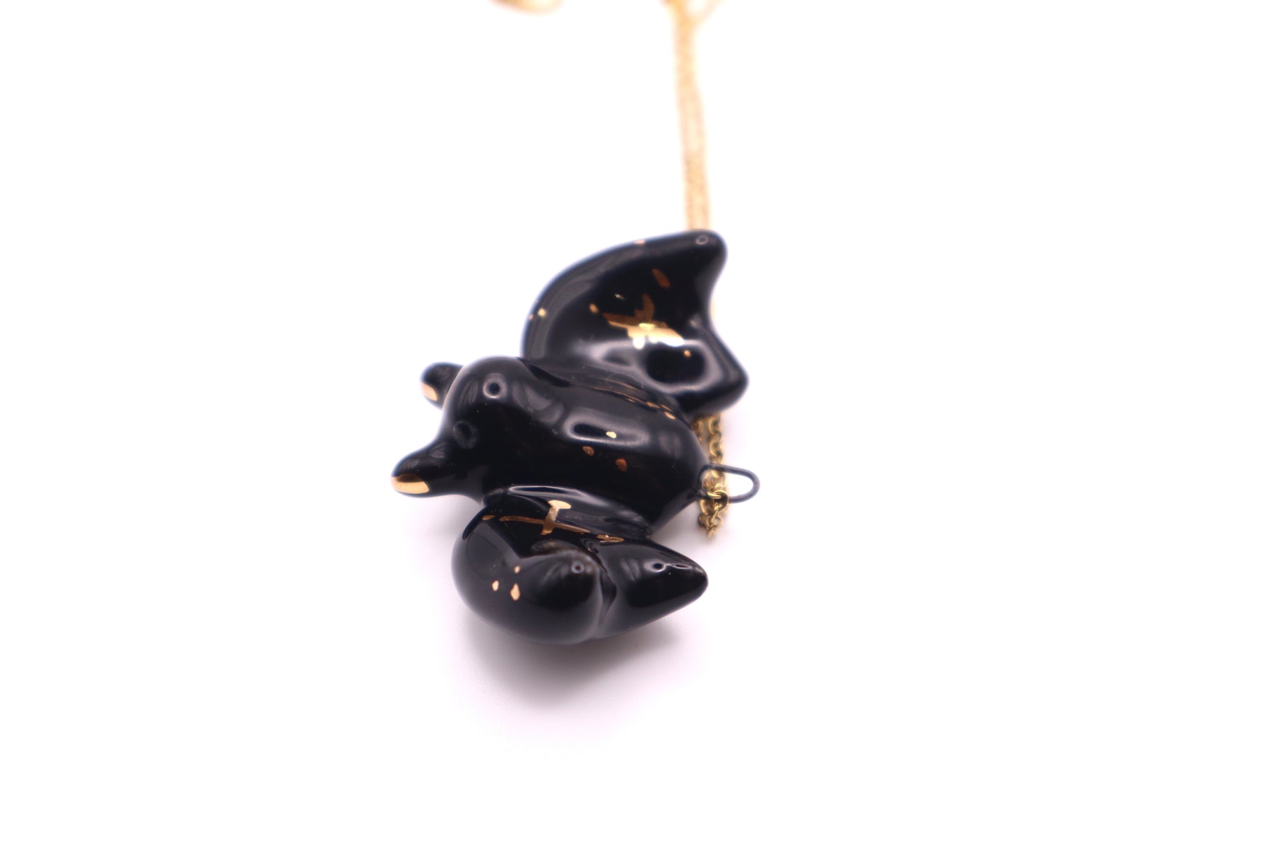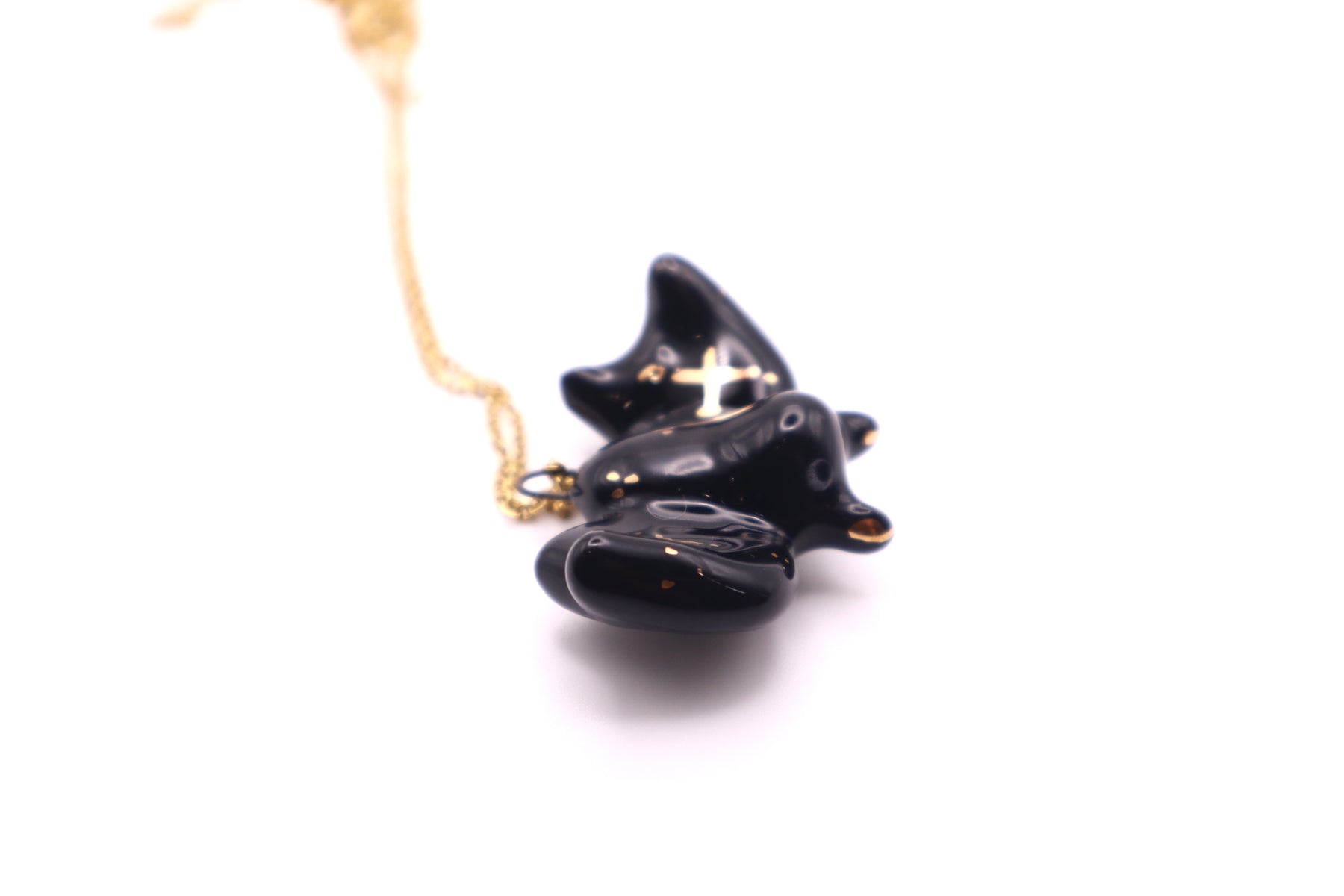 This long necklace features lovingly handmade porcelain animal. It has been hand sculpted and finished with a beautiful non-toxic glaze and gold luster. The luster contains real gold with a brilliance of 22K.