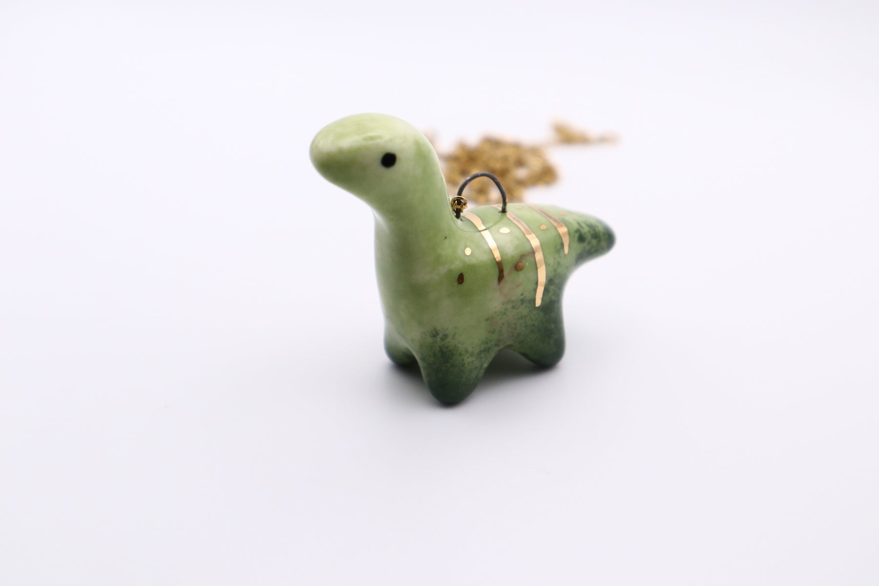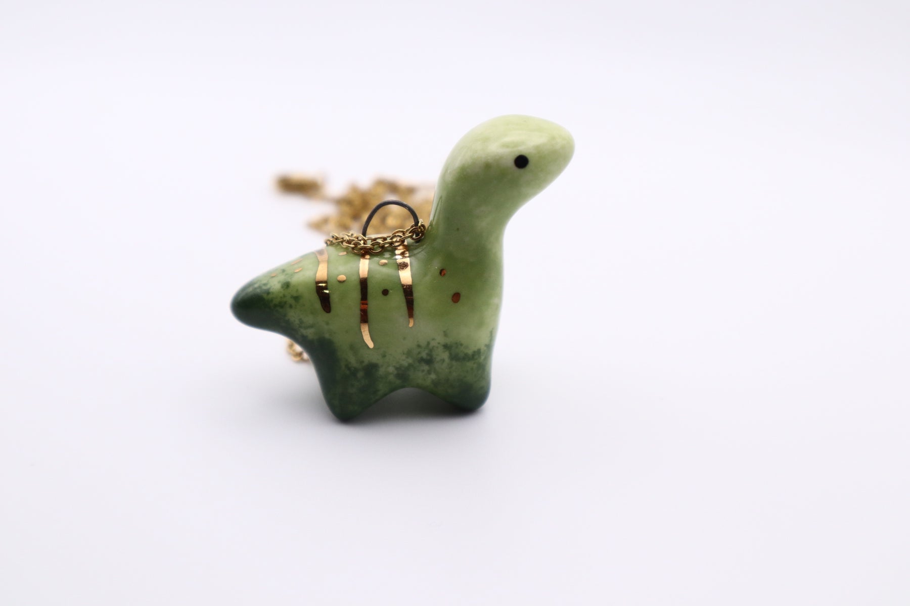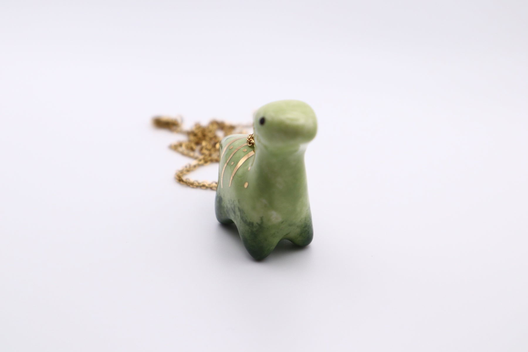 This long necklace features lovingly handmade porcelain animal. It has been hand sculpted and finished with a beautiful non-toxic glaze and gold luster. The luster contains real gold with a brilliance of 22K.