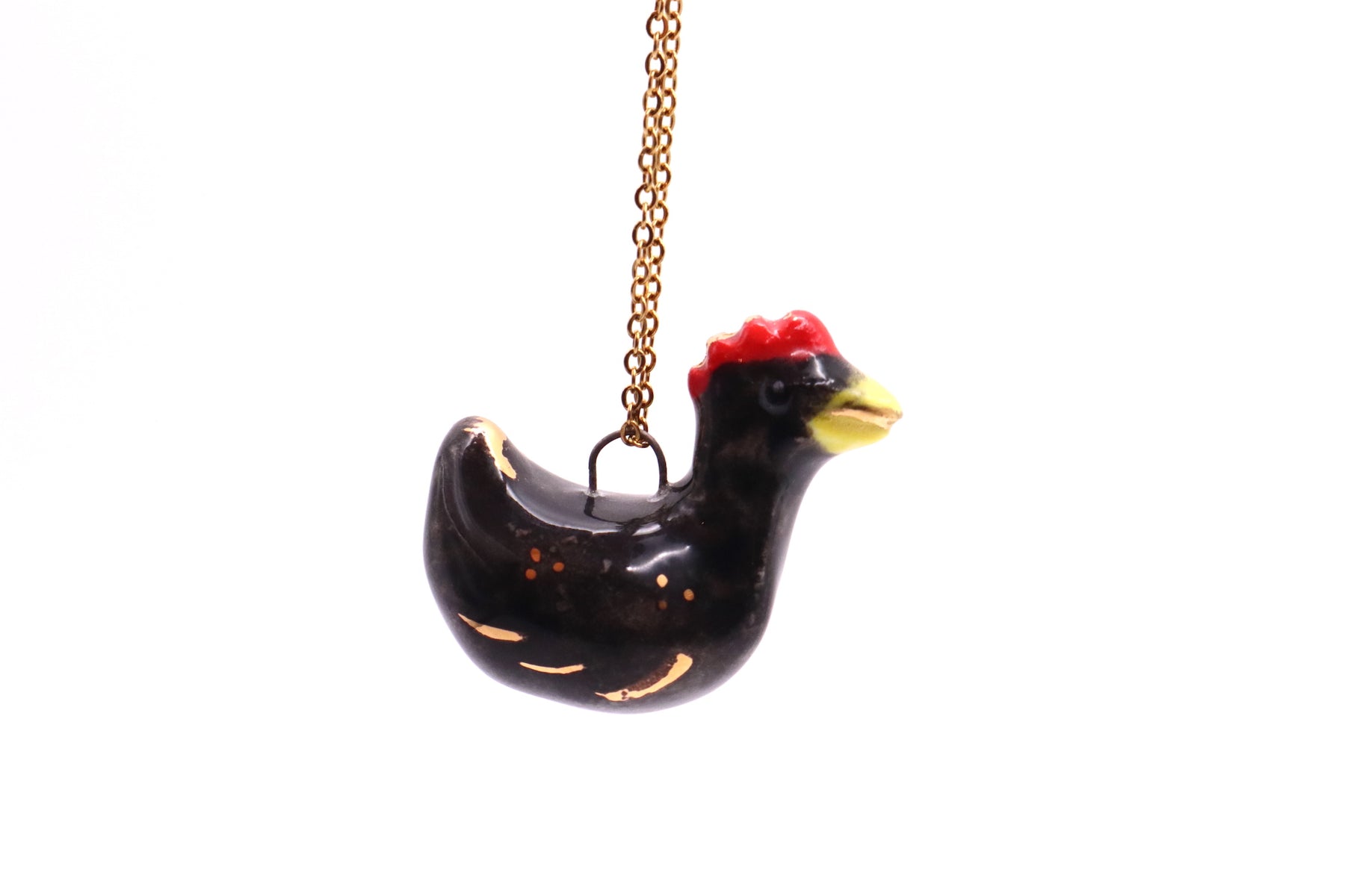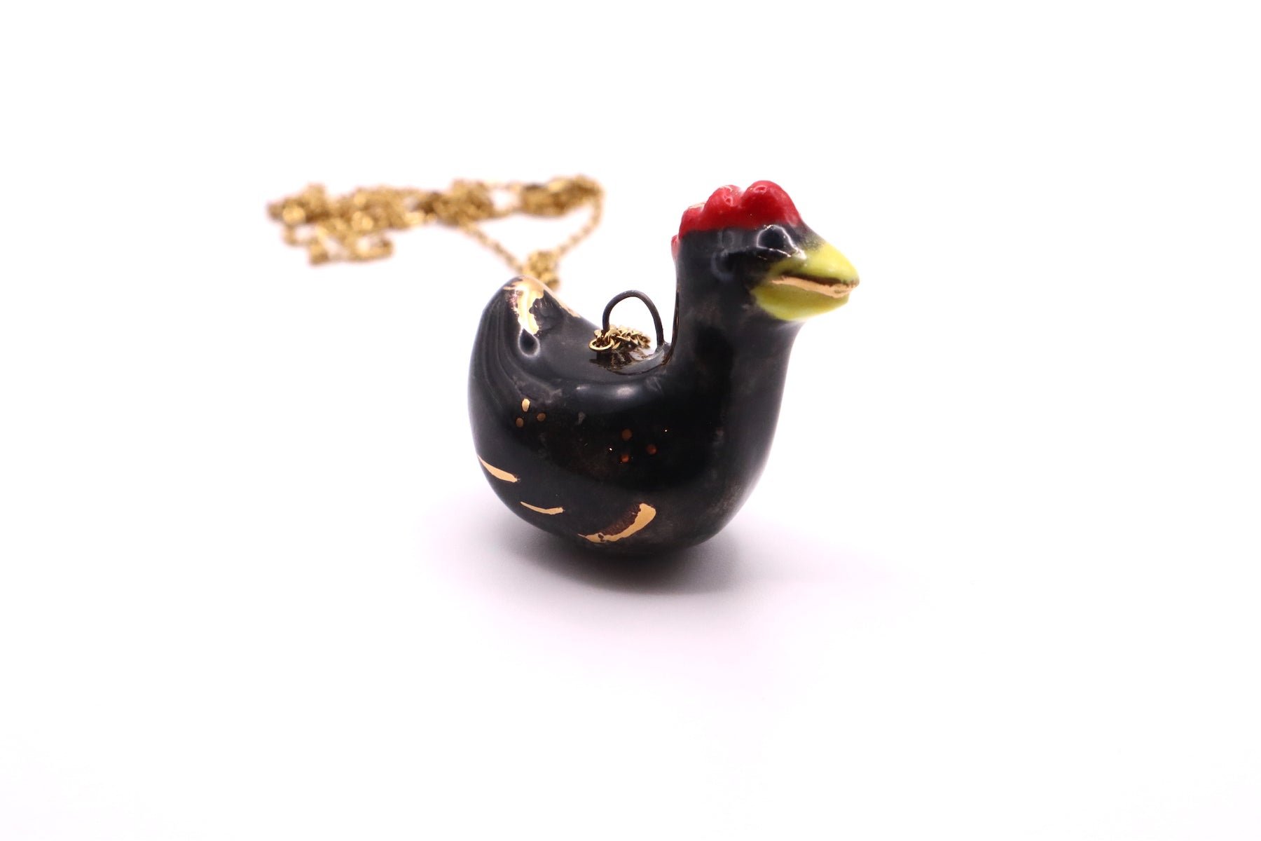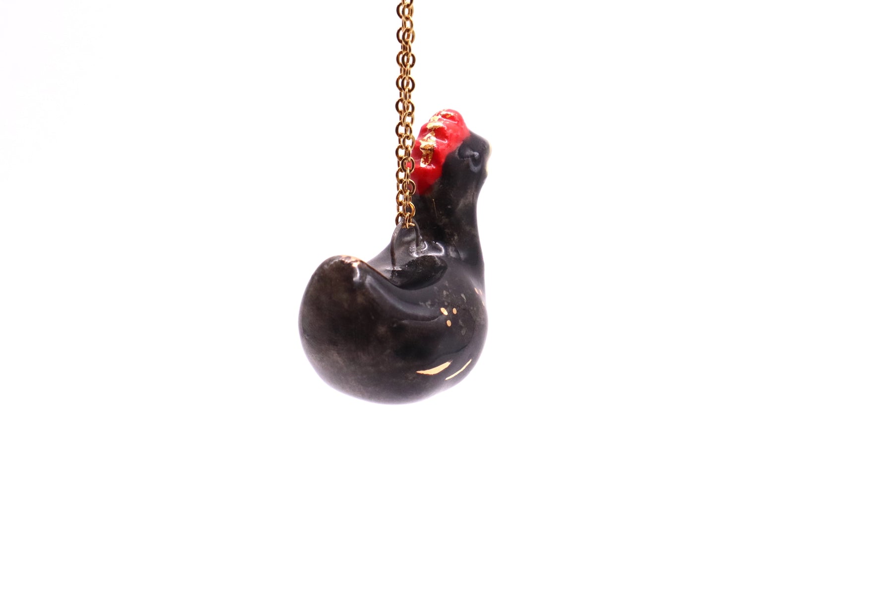 This long necklace features lovingly handmade porcelain animal. It has been hand sculpted and finished with a beautiful non-toxic glaze and gold luster. The luster contains real gold with a brilliance of 22K.