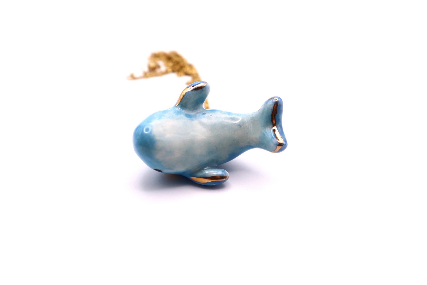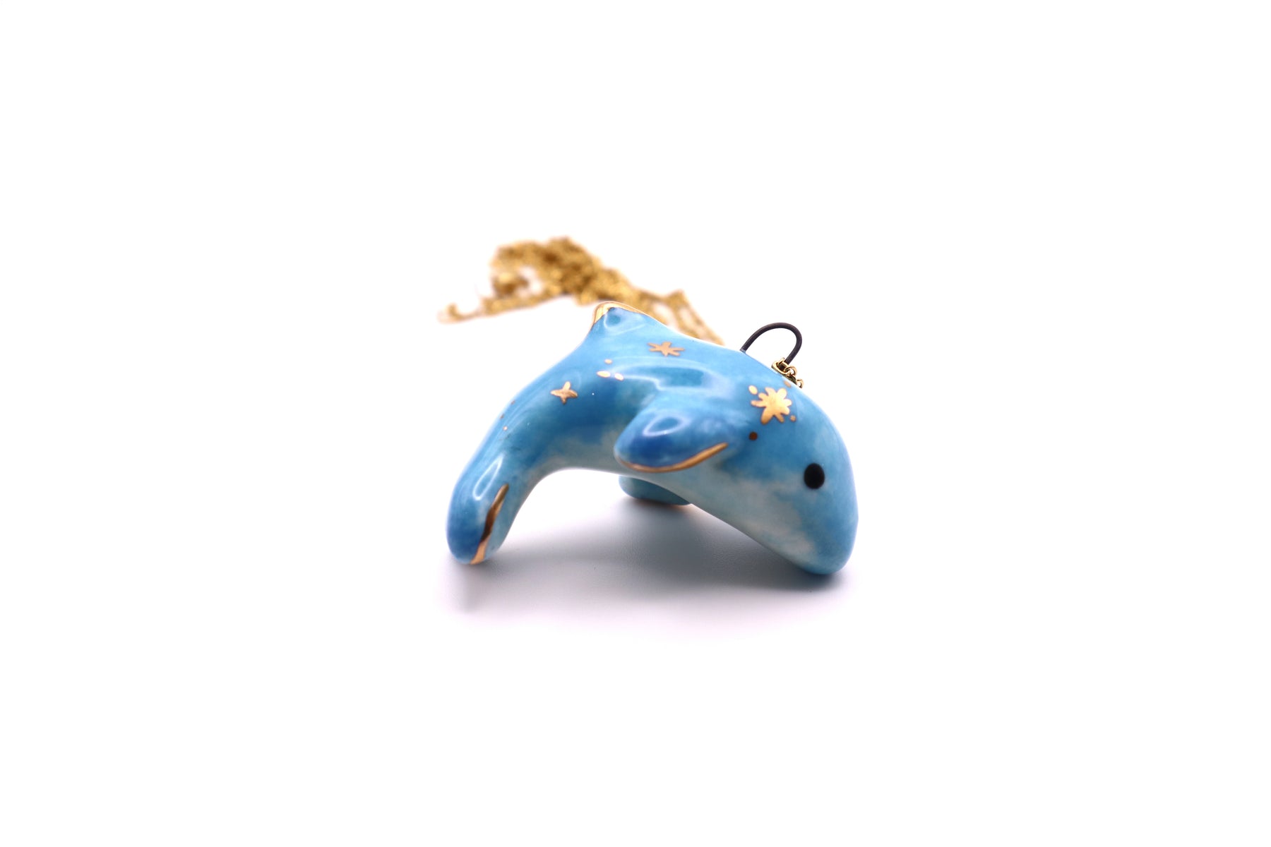 This long necklace features lovingly handmade porcelain animal. It has been hand sculpted and finished with a beautiful non-toxic glaze and gold luster. The luster contains real gold with a brilliance of 22K.